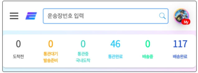 📌 통관알리미 웹 (또는 앱)으로 가셔서 메인화면 상단에 운송장번호를 입력합니다.