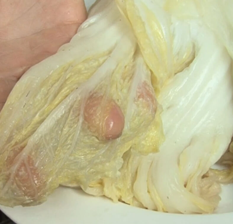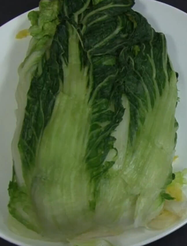 - 배추의 속은 너무 두껍지 않고 너무 꽉 차지 않은 것을 고릅니다. (80% 정도 찬 것)