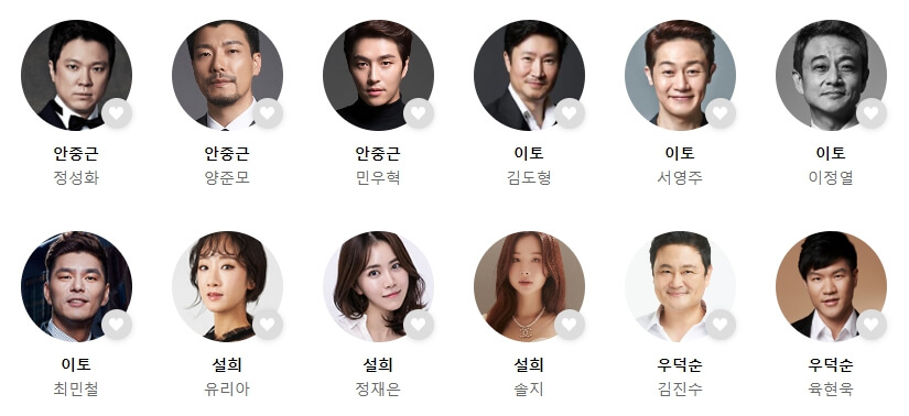 🔳 캐스트: 주민진, 진태화, 임준혁, 홍승안, 최연우, 김려원, 이정화, 김수연 등