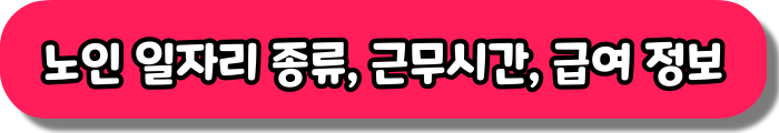 노인일자리는 연령 별 (60세 이상, 65세 이상)로 지원할 수 있는 유형이 나뉘어 있는데요. 각 유형별로 업무시간과 급여가 다릅니다. 노인/시니어 일자리 종류와 근무시간, 급여가 궁금하신 분들은 아래에서 확인하실 수 있습니다.