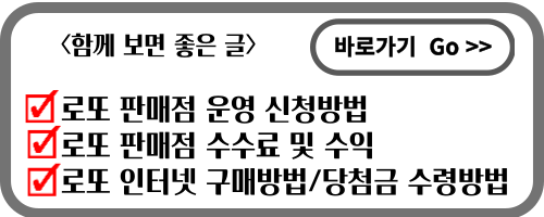 로또 판매점 운영 신청방법, 로또 판매점 수수료 및 수익, 로또 인터넷 구매방법/당첨금 수령방법 등이 궁금하신 분들은 아래 글에서 자세한 내용을 확인하실 수 있습니다.