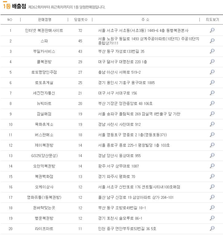 1등 당첨 판매점 로또 명당 확인