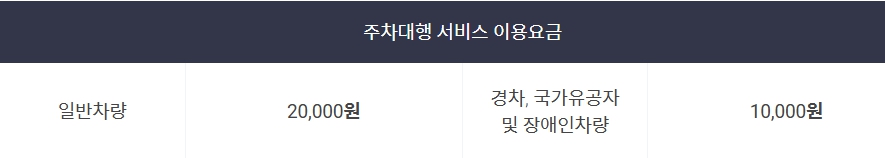 - 주차대행업체는 24시간 운영하며 예약 후 이용가능합니다.