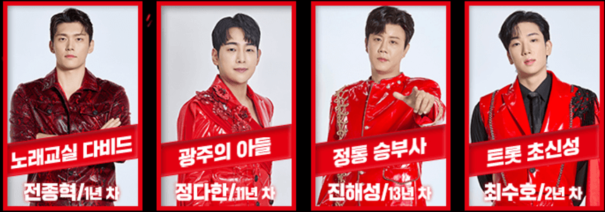 그동안 미스터트롯 시리즈와 불타는 트롯맨 등의 프로그램에서 보셨던 반가운 가수들과 트로트에 처음 도전하는 가수들이 대거 출연합니다.