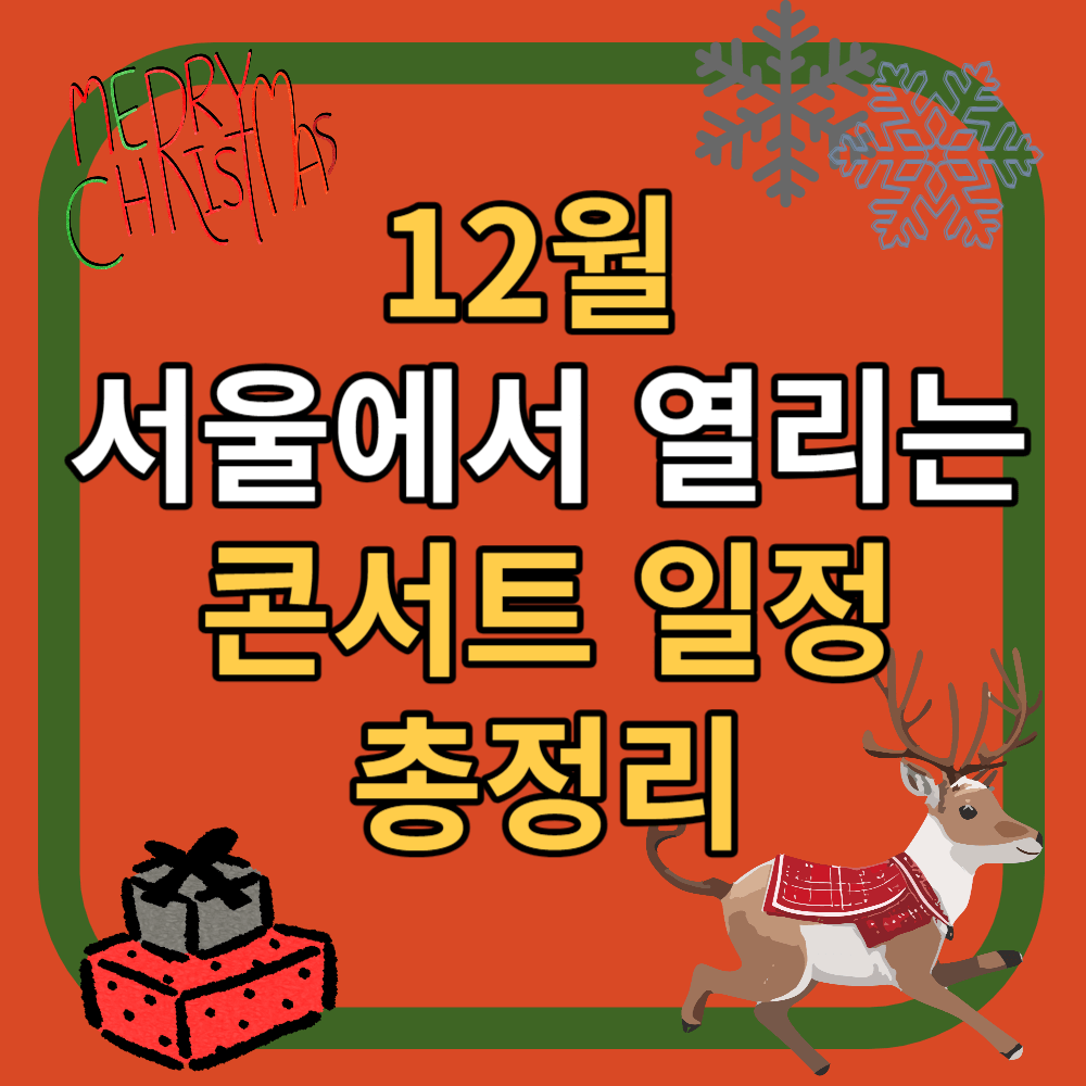 12월은 크리스마스도 있고 한해를 마감하는 연말이라 많은 분들이 연인 또는 가족들과 콘서트를 찾으십니다. 부모님이 좋아하는 가수의 콘서트 티켓은 효도선물로도 좋습니다. 올해는 거리두기 없는 첫 12월이라 더욱 기대가 되는데요. 12월 서울에서 열리는 모든 콘서트 일정을 총정리 했습니다. 아래 일정 참고하셔서 콘서트 예매 성공하시고 즐거운 12월 보내시길 바랍니다.