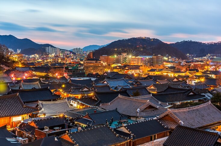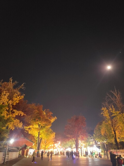 전주한옥마을은 다양한 먹거리와 즐길거리가 많은 인기 관광지입니다. 단풍의 계절 한옥과 단풍이 어우러진 풍경이 더욱 아름다운 곳입니다. 이곳은 낮에도 좋지만 밤이 되면 따뜻한 불빛으로 인해 마을이 더욱 아늑해집니다. 주변에 전동성당, 경기전, 어진박물관, 오목대, 남부시장 등 가볼 만한 곳도 많이 있어 1박으로 여행하셔도 좋을 것 같습니다.