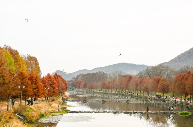 춘천시에 있는 남이섬은 아름다운 자연과 다양한 액티비티로 많은 가족, 친구, 연인들이 많이 방문하는 곳입니다. 특히 가을이면 아름다운 단풍구경을 할 수 있는 곳으로 유명하기도 합니다. 북한강으로 둘러싸인 남이섬에는 배를 타고 들어가야 합니다. 입장권을 구매하면 왕복 선박요금이 포함됩니다. 남이섬의 총면적은 14만 평으로 다 걸어서 구경하기에는 내부에 투어 버스와 기차를 이용하면 더욱 편리하게 남이섬의 풍경을 감상하실 수 있고 집라인과 스카이라인과 같은 액티비티를 즐기실 수 있습니다.