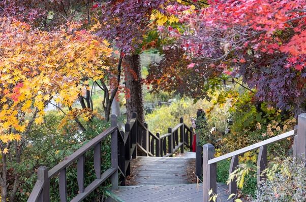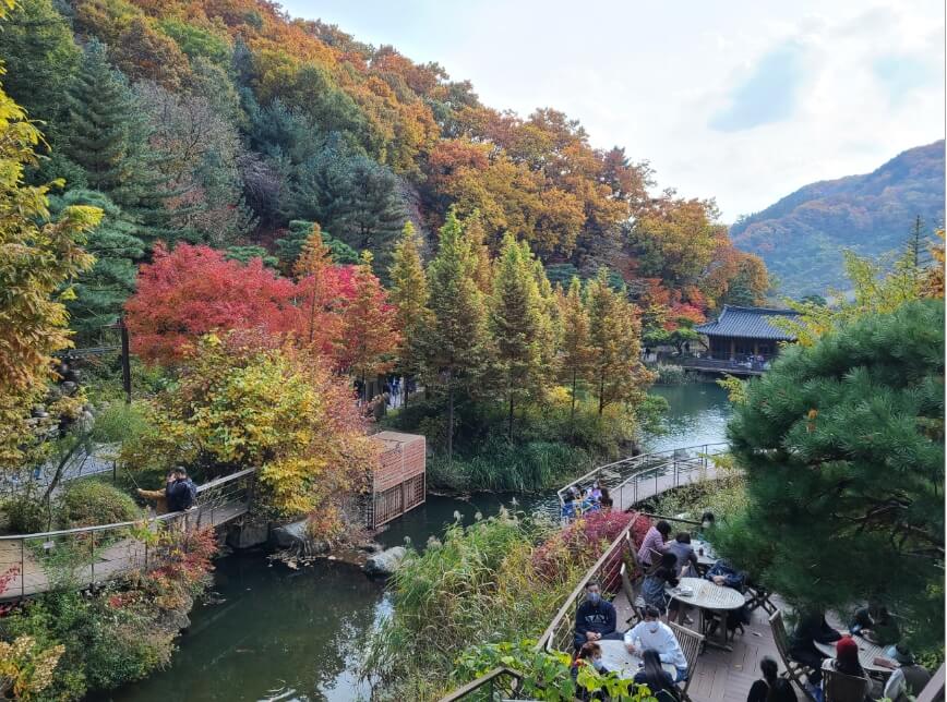 경기도 가평에 있는 아침고요수목원은 20년째 많은 방문객들이 찾는 아름다운 수목원입니다. 이곳도 가을이 되면 단풍으로 더 풍성해지고 있습니다. 실내 온실과 실외 정원에 수많은 꽃과 나무가 있고 강아지, 앵무새, 호랑이, 알파카, 반달가슴곰, 원숭이, 토끼, 당나귀 등 동물들도 만날 수 있어 보는 즐거움이 있습니다. 2023년 10월 21일 ~ 11월 19일까지는 국화전시회가 열리고, 수목원 내부에 카페와 식당도 있습니다.