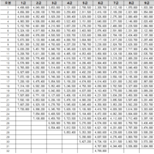 아래에서 공무원 직종별 봉급표를 확인하실 수 있습니다.