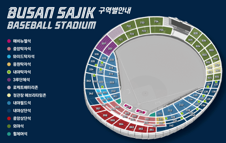 - 중앙상단석: 홈플레이트 중앙 뒤쪽 상단 좌석. 넓은 시야로 경기 전반을 한눈에 볼 수 있고, 스코어와 작전을 파악하기 유리.